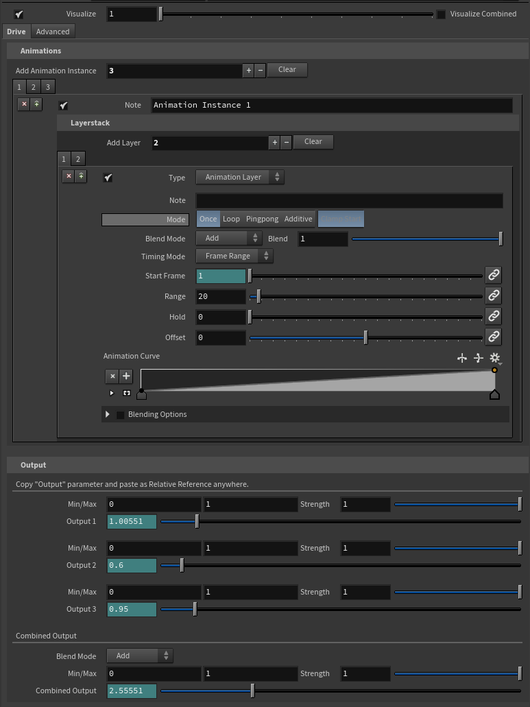 - Drive Mixer - Combine several “Drive" outputs with different blending options and modifiers to further layer animation.